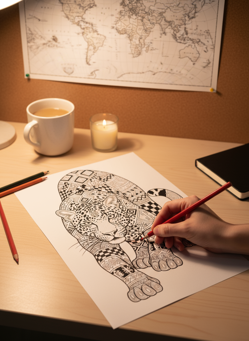 Explorez quatre univers de coloriages pensés pour apprendre, voyager, s’évader et se ressourcer, entre découvertes pédagogiques, affiches vintage, animaux symboliques et chats kawaii voyageurs.