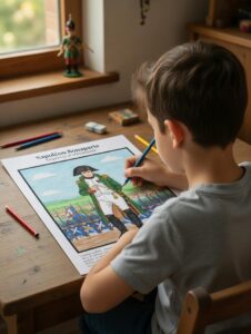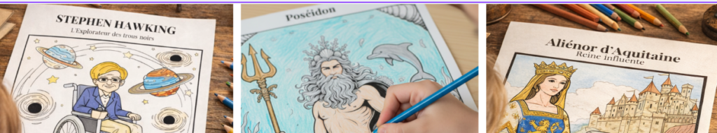 Colorier pour ancrer les connaissances : L’acte de colorier stimule l’observation, la concentration et la mémorisation. Il permet à l’enfant de s’approprier le sujet en profondeur, rendant chaque savoir concret à mesure qu’il donne vie à la page.