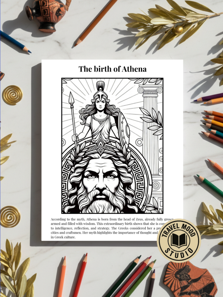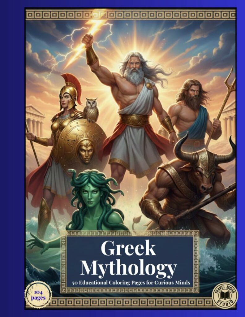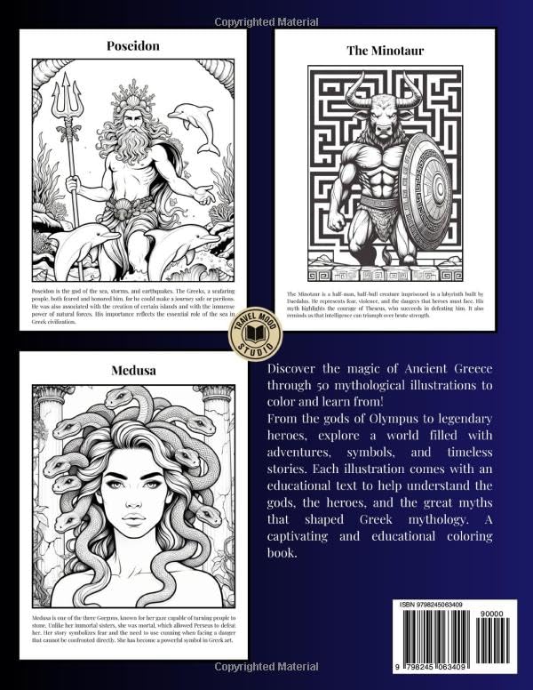 With “Greek Mythology,” young readers step into the vibrant world of Ancient Greece through 50 illustrations to color, each paired with a clear and accessible explanatory text.