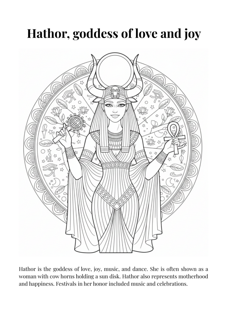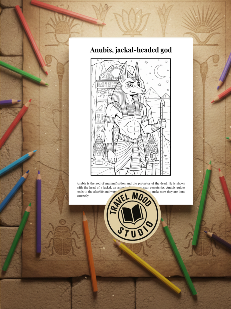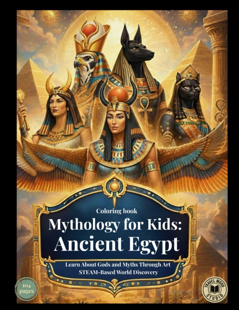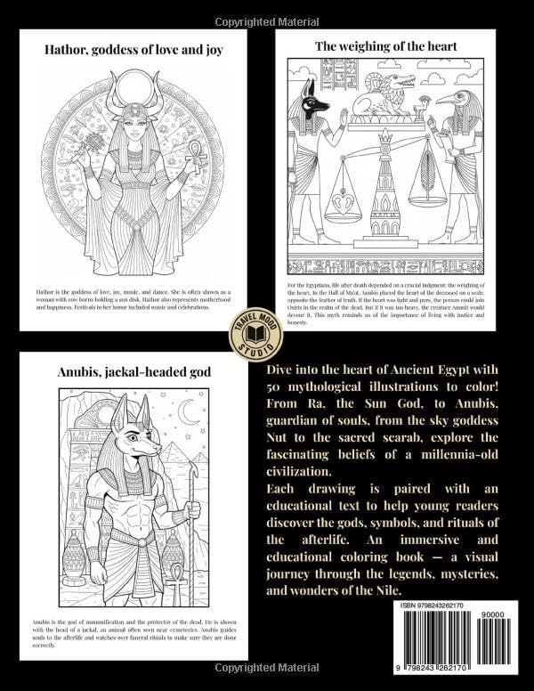 Throughout the pages, children explore the founding myths of Ancient Egypt: gods and goddesses, sacred symbols, rituals, the afterlife, and the eternal struggle between order and chaos. Coloring becomes a way to better understand, remember, and find meaning in the stories that have endured for centuries.