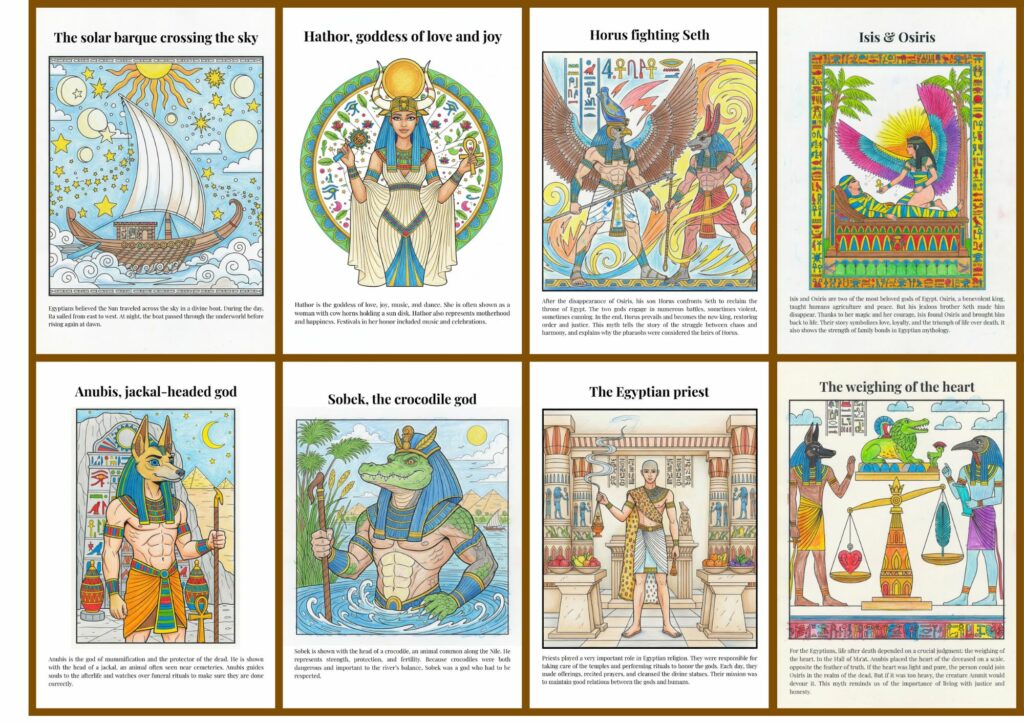 With Mythology for Kids: Ancient Egypt, young readers dive into the heart of a fascinating civilization through 50 illustrations to color, each paired with a clear and accessible explanation.