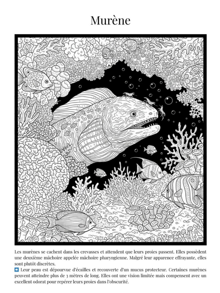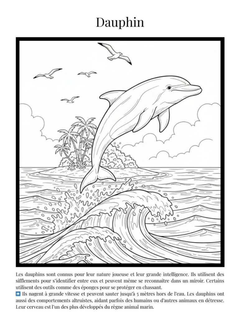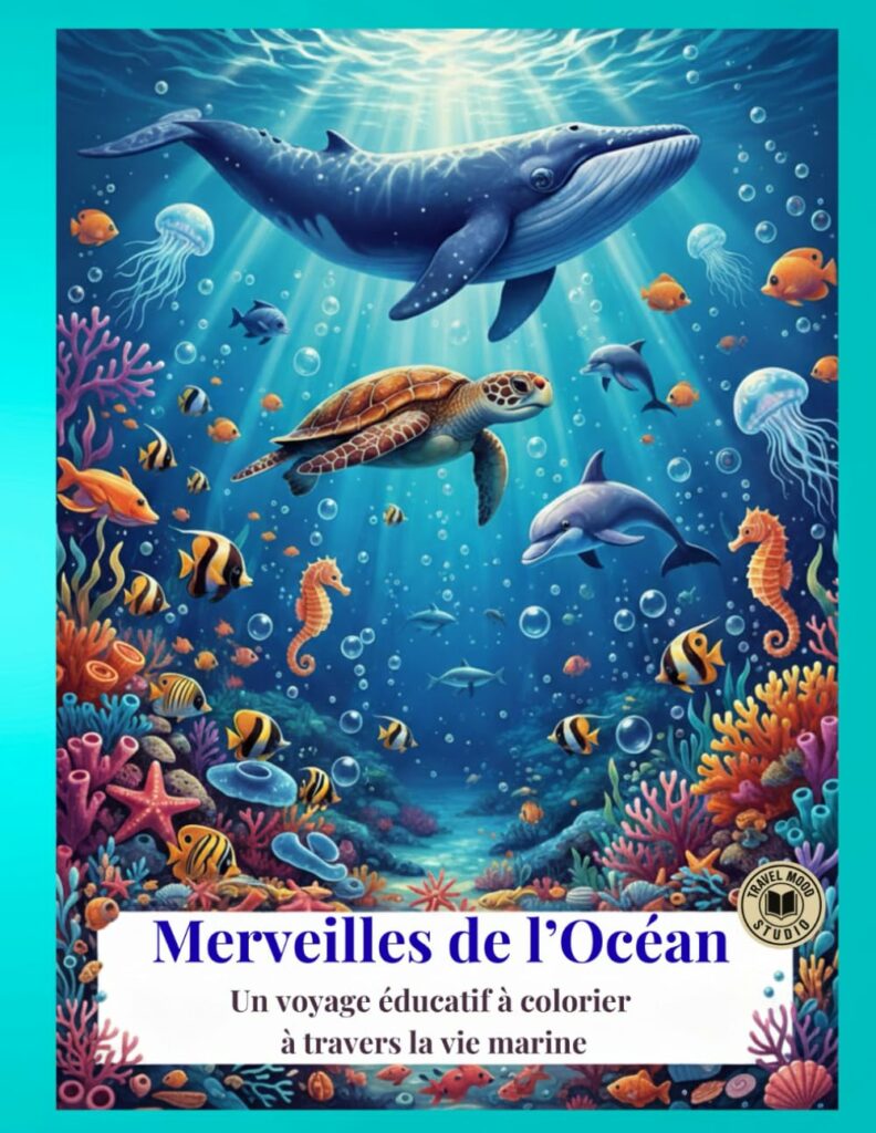 Avec Merveilles de l’océan, les jeunes lecteurs découvrent la richesse du monde marin à travers plus de 50 illustrations à colorier, chacune accompagnée d’un texte explicatif clair et accessible.