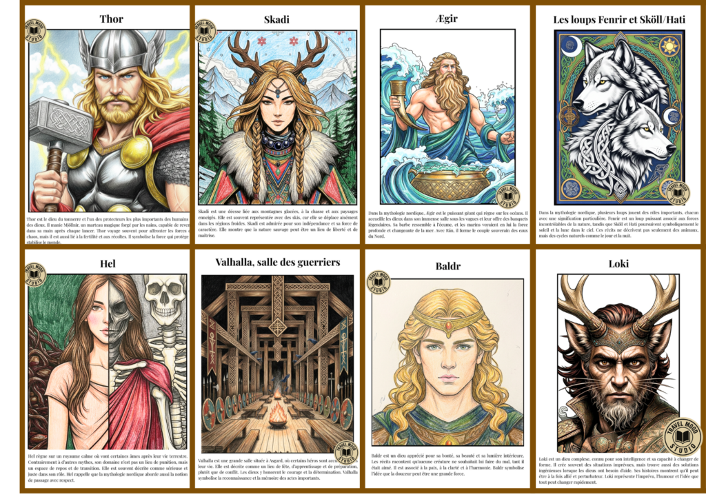 Au fil des pages, l’enfant explore les grands récits de la mythologie nordique : les dieux d’Asgard, les géants, les mondes reliés par Yggdrasil, les créatures fantastiques, les valeurs de courage, de loyauté et de destin, jusqu’au Ragnarök, la fin annoncée des dieux.