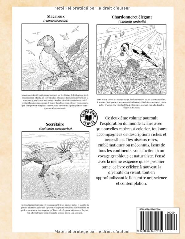 Avec Oiseaux du monde – Tome 2, les jeunes lecteurs poursuivent leur exploration de la biodiversité à travers 50 nouvelles illustrations à colorier, accompagnées de textes documentaires clairs et stimulants.