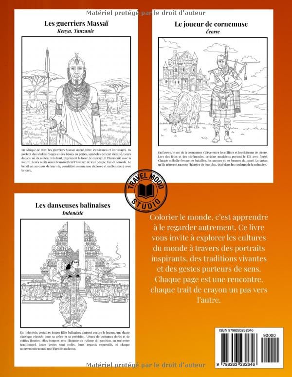 Avec Peuples du Monde, les jeunes explorateurs découvrent 50 peuples fascinants grâce à une activité calme, créative et profondément enrichissante. Chaque page propose un portrait à colorier accompagné d’un texte court, pensé pour transmettre l’essentiel sans jamais surcharger.